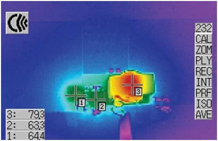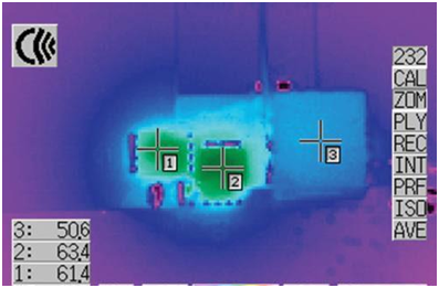 不同工作模式的效率如圖 3 所示。在 12V 輸入電壓時(shí),滿負(fù)載效率高達(dá) 90.3%。與采用 1m? 采樣電阻器和具備相同功率級(jí)設(shè)計(jì)的電源相比,這大約改善了 1.4%。在沒有任何空氣流動(dòng)時(shí),熱點(diǎn) (底部 MOSFET) 的溫度僅上升 39.6°C (如圖 4 所示)。在這張圖中,環(huán)境溫度大約為 23.8°C。EFFICIENCY:效率